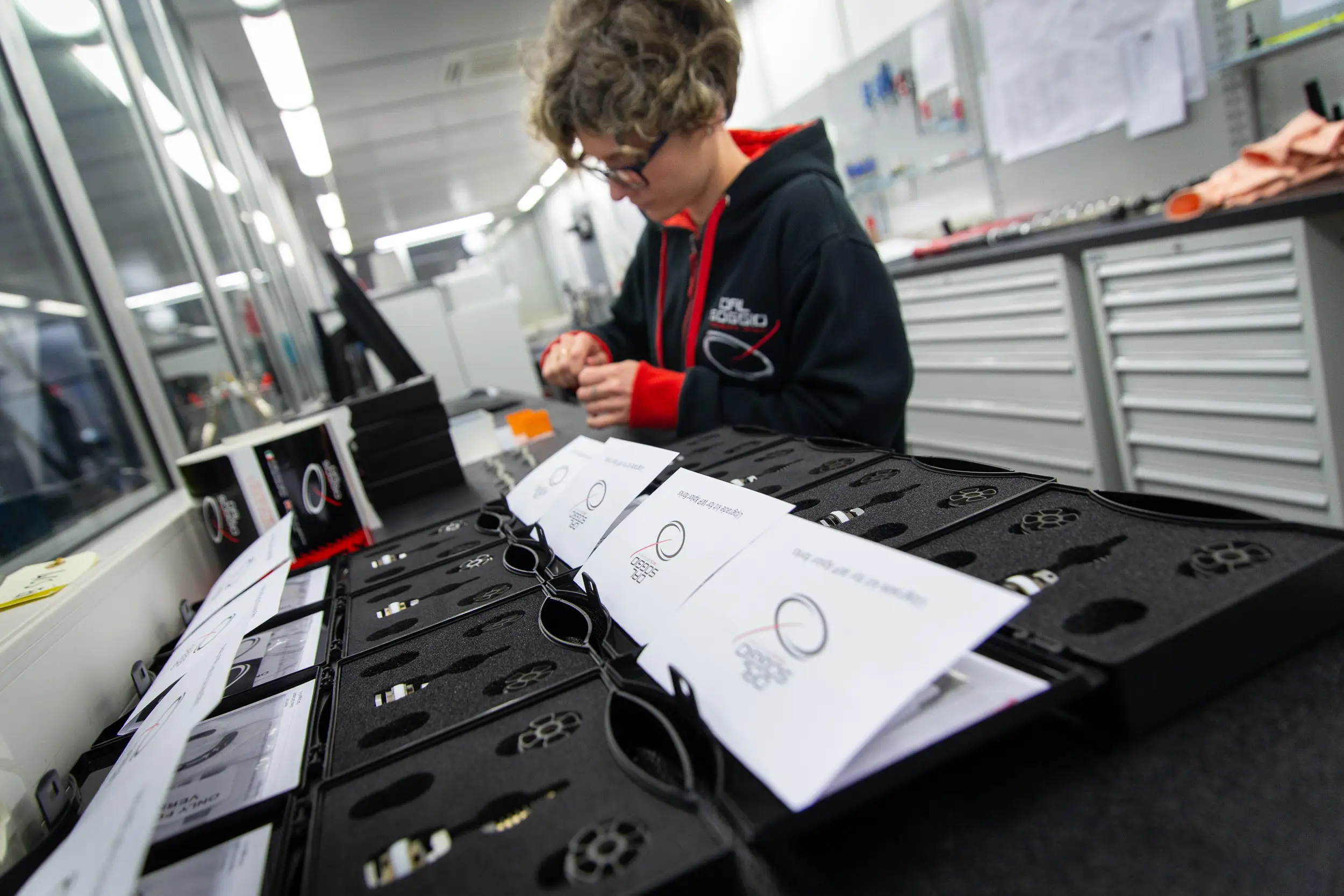 Il servizio è proseguito documentando i processi produttivi interni: dai macchinari a controllo numerico alla manualità degli operatori. Ho fotografato lo staff mentre assemblava, testava e controllava ogni singolo componente, per raccontare la competenza e la passione che animano l’azienda. L’approccio è stato discreto ma immersivo, per cogliere momenti autentici e trasmettere fiducia e professionalità.